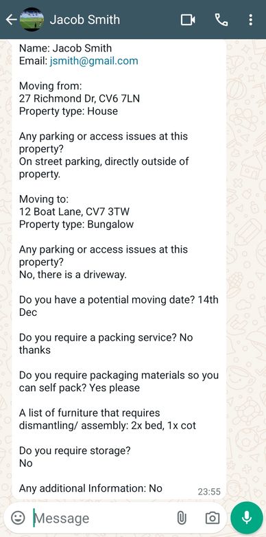 Lastly, please copy the following Important questions regarding your move. Then paste and send the completed questions at the same time as providing the completed self survey video.